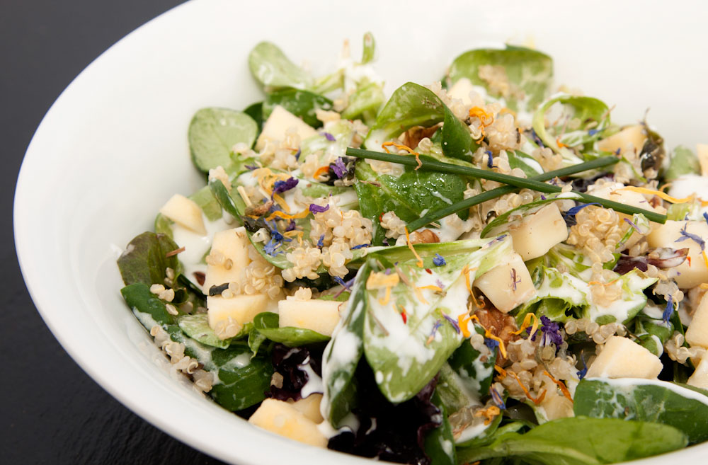 Lechuga italiana, sangría, romana y larga, acelgas, zanahoria, morrón amarillo, arándano y trocitos de peras Bosc y S...